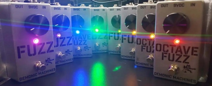 It is true, there are many Demonic Machines that are available at these awesome music shops in addition to our own online shop. However, be warned, you won’t find our $50 Fuzz or $60 Octave fuzz in any shop, at least, not new. That’s because we are still a small operation, as of the publish date of this article it is still just Lucky (the monster), our chief engineer and founder, and Angie Rabia, sales and marketing.
